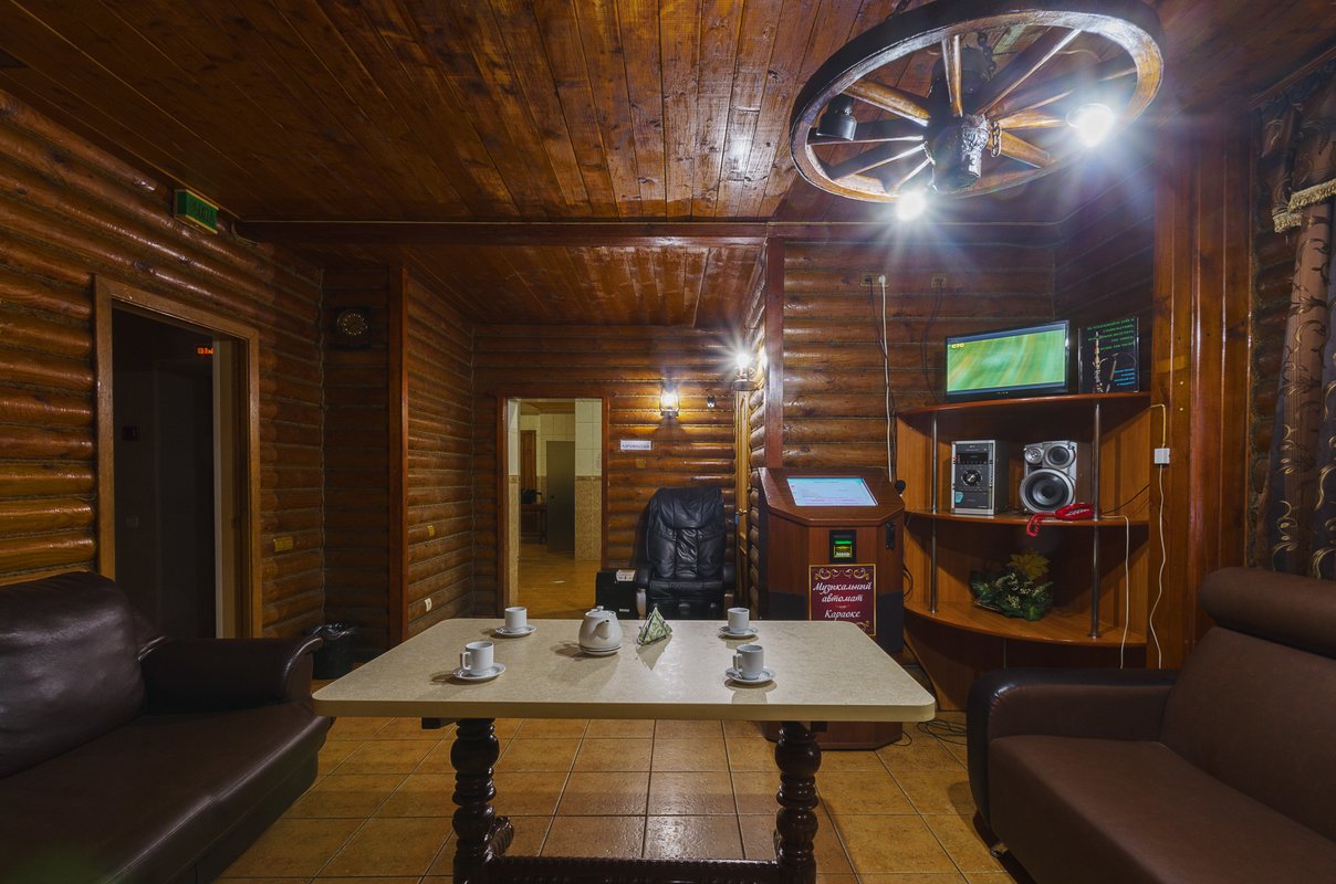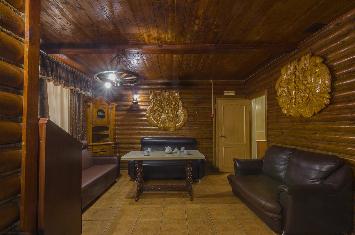 Не хочется в бассейн? Не проблема! Вместо этого можно посидеть в нашей комнате отдыха. Мы постарались создать здесь комфортный, стильный интерьер из максимально натуральных, экологичных материалов, выбрать мебель, которая будет одновременно удобной и красивой. Надеемся, что вам понравится! Для создания настроения у нас есть бильярд, кальян и караоке. Также у нас работает бар, а если нужно, вы можете прийти и с собственной едой - мы не против! Только не забывайте, что плотная трапеза непосредственно перед посещением парной - это не самая хорошая идея, согласно мнению терапевтов. А вот после парной она совсем не повредит!